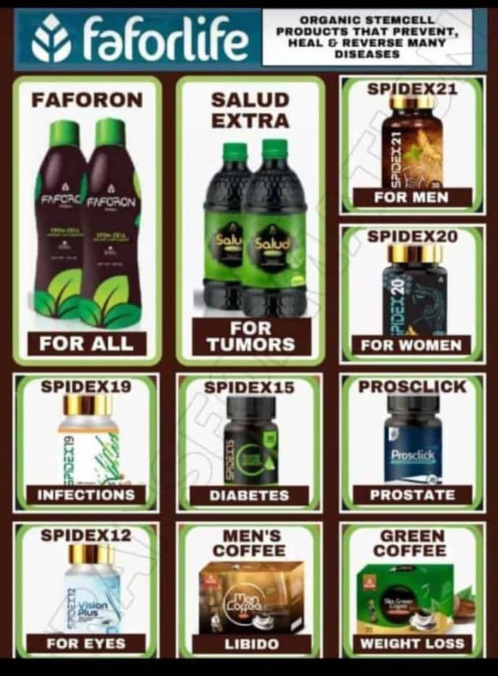 Faforon Herbal is a miracle stem cell drink that boosts the immune system, energizes the body, cleanses the circulatory system, rebuilds dead cells, and detoxifies the body.